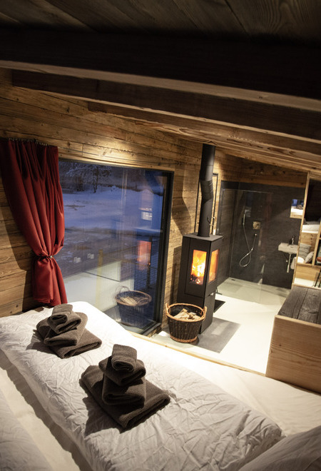 Ein traumhaftes Ambiente, ein wohlig-weiches Bett, eine Regenwald-Duschbrause, ein kuscheliges Plätzchen vor dem Kaminofen und Panoramafenster, damit man weder Sonnenaufgang noch Sonnenuntergang verpasst.
