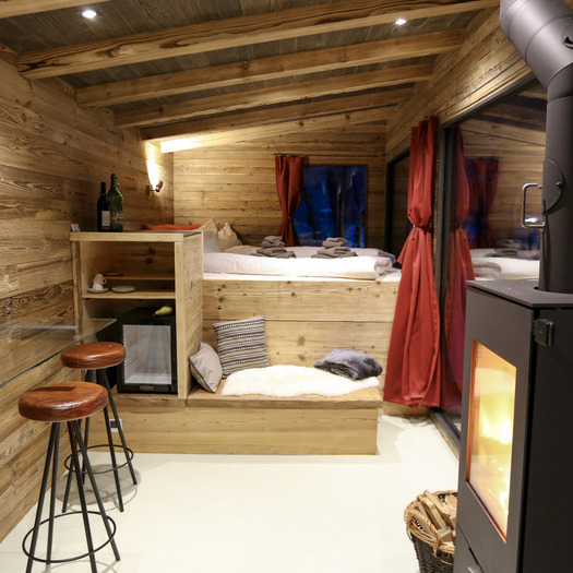 «Nous avons délibérément renoncé aux détails inutiles. Il était important pour nous de créer une expérience authentique avec des matériaux de qualité,» explique Fabian Müller, «de plus, la pièce maîtresse de la MiniVilla devait être un élégant poêle à bois.»
