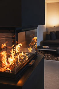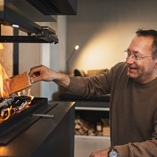 «L'architecte, Claudio Holdener et moi-même avions en tête une cheminée à bois sur un mur latéral du salon et lors de notre visite au showroom de Cham, ces cheminées étaient également le sujet principal», raconte Guido Heinrich, «jusqu'à ce qu'Erwin Hauenstein, fondateur de l'entreprise Attika, nous propose de regarder également la cheminée VISIO 3 L.»