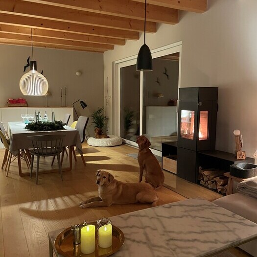 En hiver, les parents et les enfants profitent désormais presque quotidiennement du confort du feu de cheminée. Et les trois chiens l'adorent aussi.