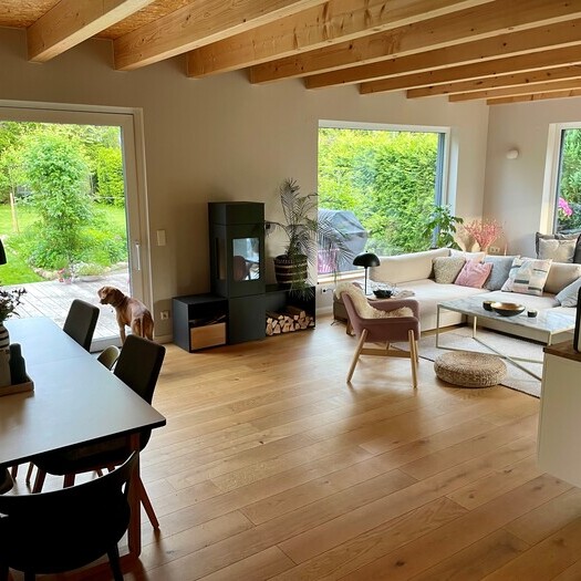 Rike von Bassewitz a intégré les connaissances acquises en matière de psychologie de l'habitat et des couleurs ainsi que d'habitat orienté vers les besoins dans la construction de ses deux dernières maisons (une nouvelle construction et une rénovation centrale d'une maison de capitaine des années 30). Elle a ainsi créé pour elle et sa famille un foyer qui répond aux exigences de confort et de retraite.