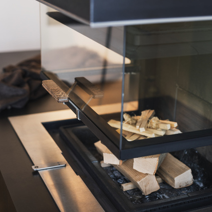 Grâce à la porte relevable facile à manœuvrer, votre cheminée s'ouvre et se ferme facilement et silencieusement. Le rechargement en bois se fait très facilement.