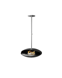 Elégante cheminée de plafond avec rotation à 360° et feu au bioéthanol par simple pression sur un bouton